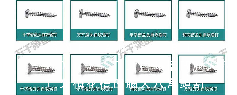 1.機螺釘 2.自攻螺釘 3.鉆尾螺釘 4.墻板釘 5.纖維板釘 6.木螺釘7.六角木螺釘 8.不脫出螺釘 9.組合螺釘 10.微型螺釘 11.家具螺釘 12.電子螺釘頭型:1.六角頭(hexagon head) 2.六角頭法蘭面(hexagon head with flange) 3.
